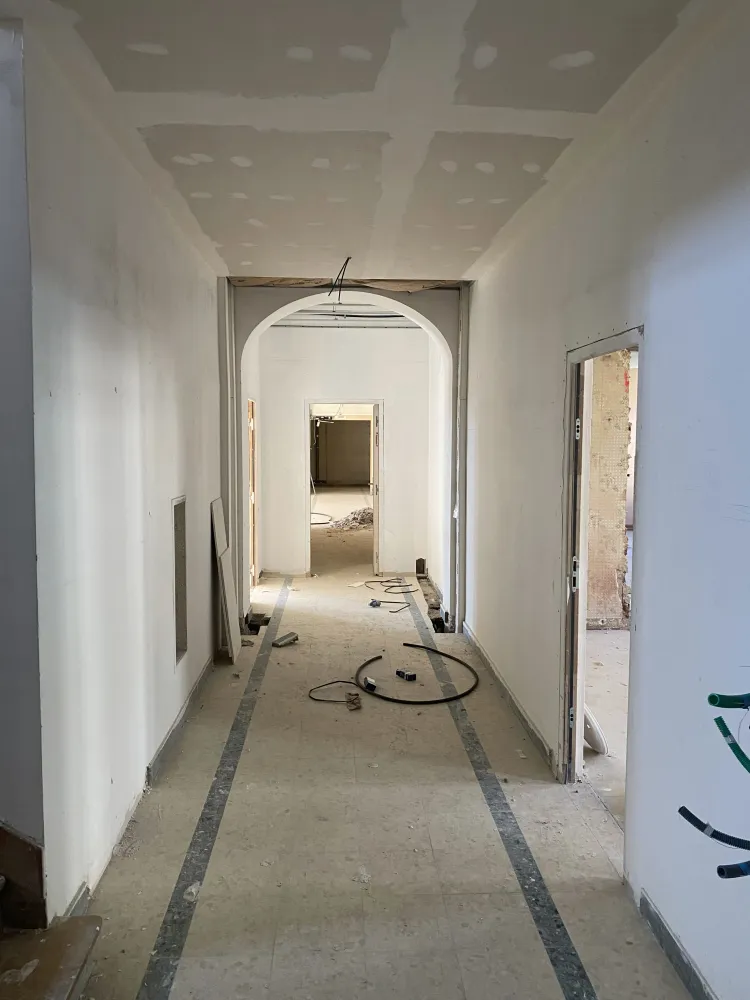 Nous coordonnons toutes les étapes : cloisons, faux plafonds, tirage de gaines, pose des boîtes aux lettres, numérotation des portes, rembardes de sécurité, peinture, visiophone etc ..